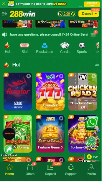 Another major advantage of 288 Win App is its simple payment system. Players can easily deposit and withdraw money using Easypaisa and JazzCash, which are widely used in Pakistan. The easy registration process and mobile-friendly design make it accessible for beginners as well.